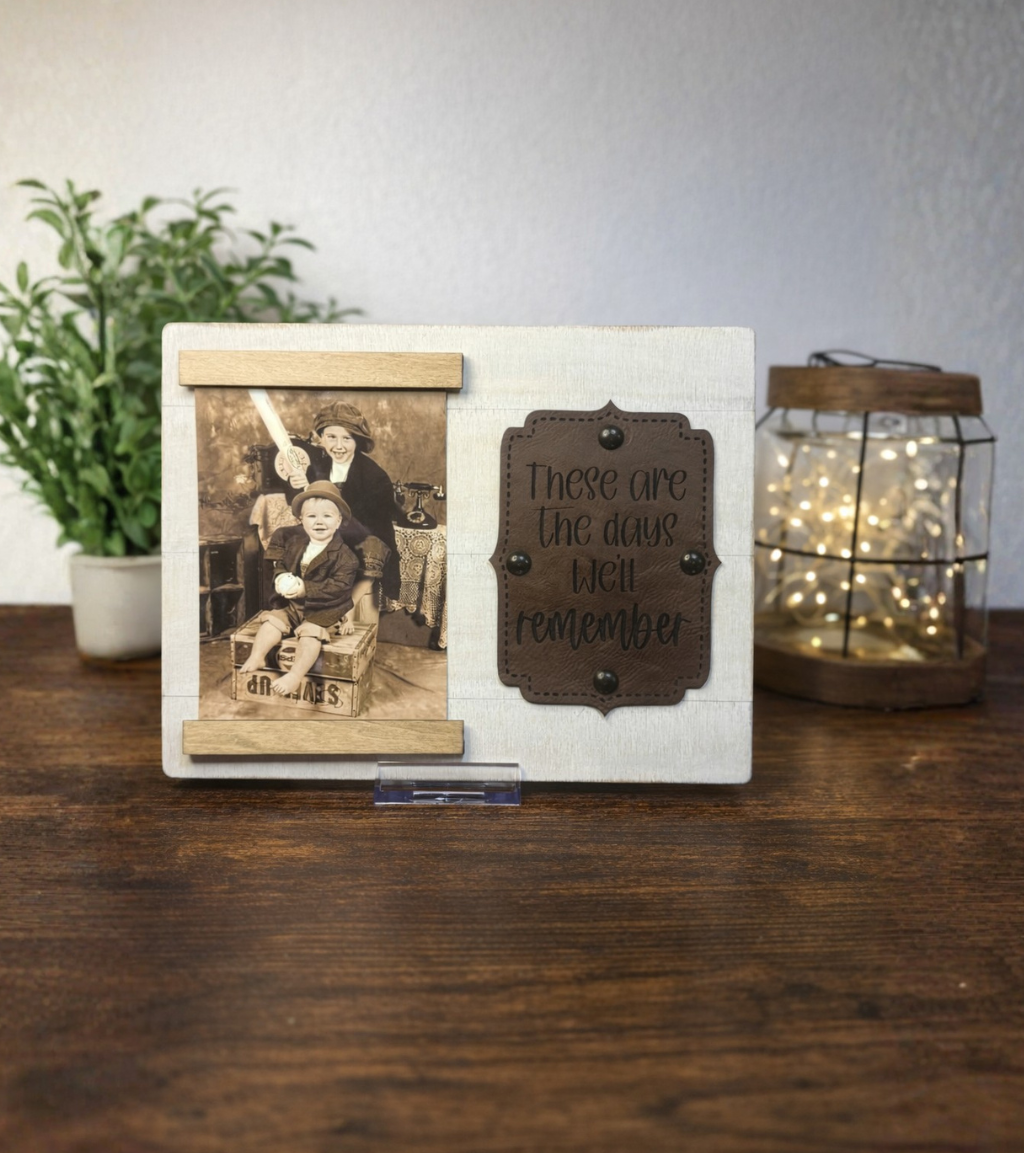 Wood with Leather Accent Photo Frame | These are the days we'll remember